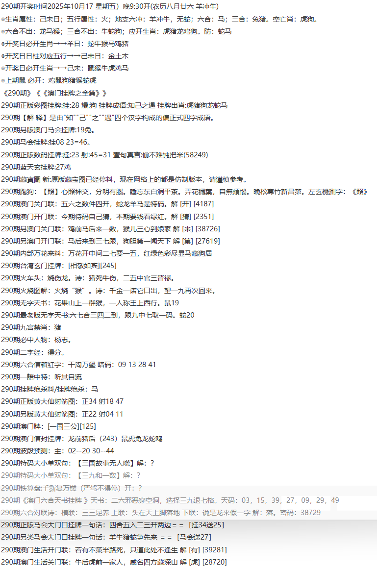 290期:前后肖必中【后肖后肖】开:0000准 |