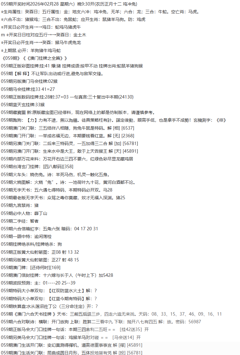 | 059期稳中⑥肖 | ||||||||||||||||||