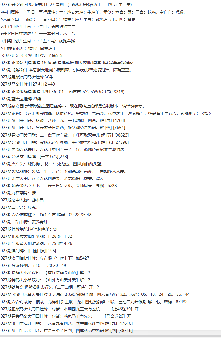 027期【澳门挂牌平特报】| 澳门挂牌原创解挂牌平特报,每期必中平特 |